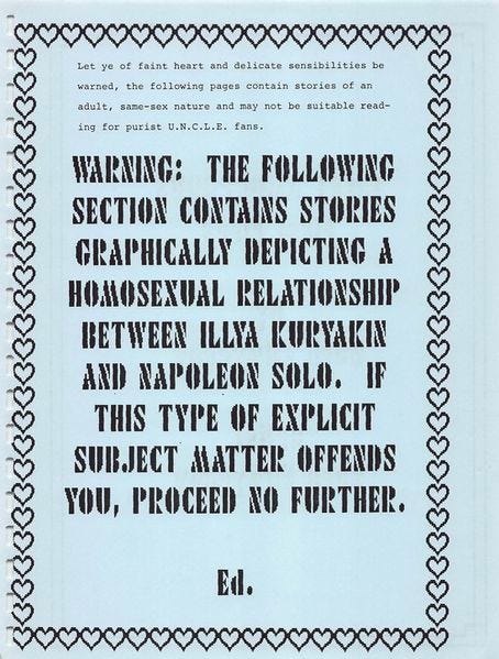 I’ve dug deep into the fandom history of ratings and trigger warnings, and it may be surprising to know how often the request for slash warnings came up and how they came up, how it was phrased, even when dealing with non-explicit content.